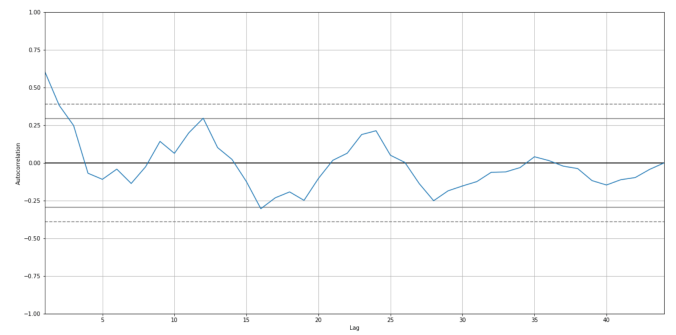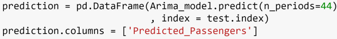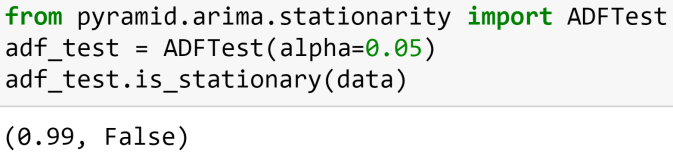Test for the stationarity of the time series using Augmented Dickey Fuller Test. Since p value is higher than alpha, we can’t reject the null hypothesis (Series is non stationary). Therefore, we would need to use the “Integrated (I)” term of the time series in a good model.