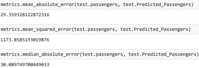 Compute error metrics such as Mean Absolute Error, Mean Squared Error and Median Absolute Error.