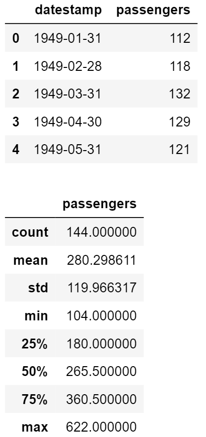 Select only selected variables by variable names. In this case we are selecting dateime and # passengers data using loc