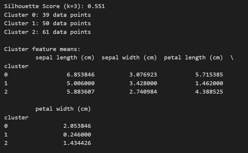 print("\nCluster feature means:")