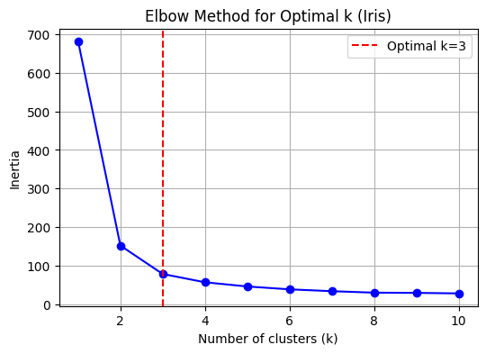 plt.title('Elbow Method for Optimal k (Iris)')