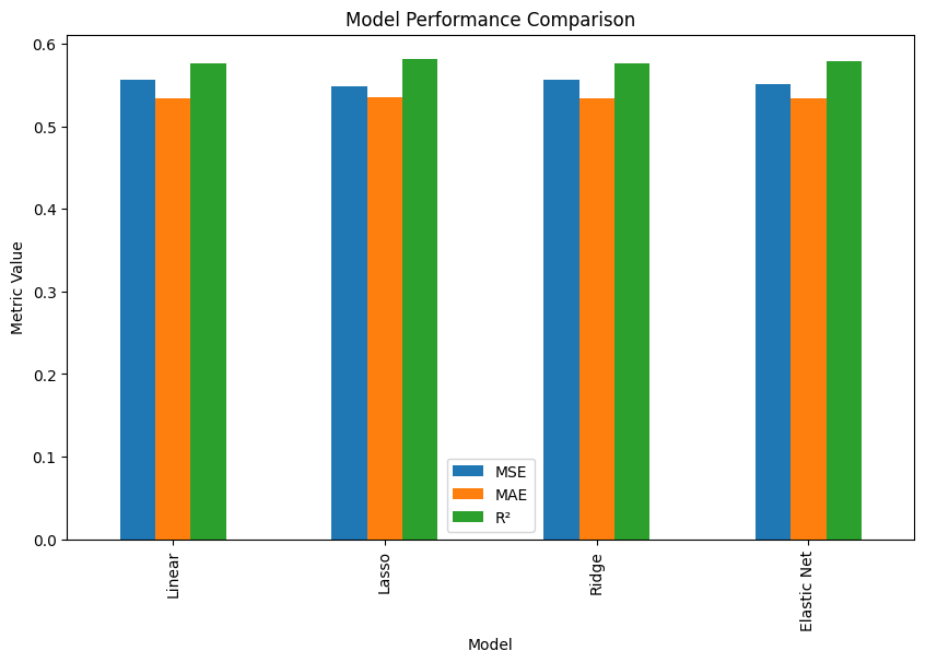 'Model': ['Linear', 'Lasso', 'Ridge', 'Elastic Net'],